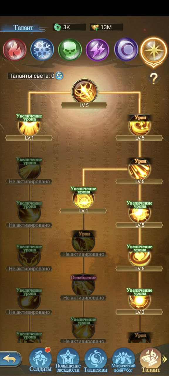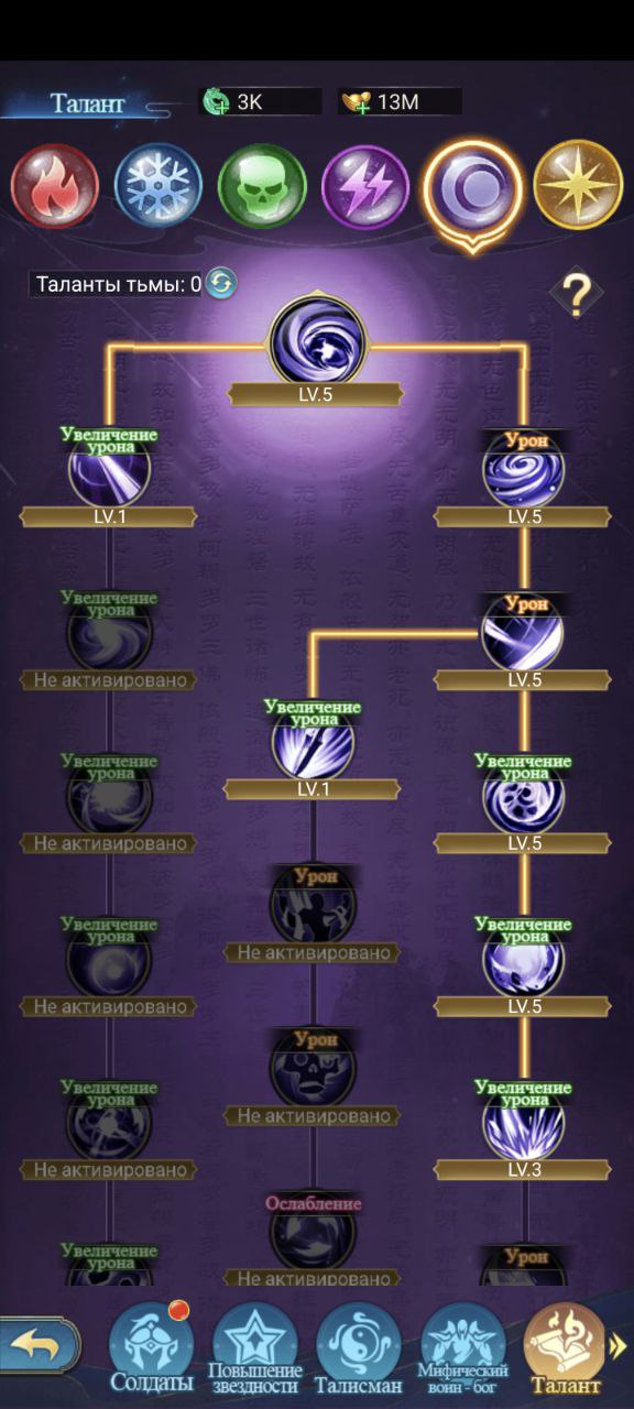 Советую: Изначально первые пару месяцев игры не думать какой талант куда вкачивать, качайте как душе угодно, но спустя 2-3 месяца активной игры и сбора солдат всех стихий советую сбросить таланты и выкачать правильно их.