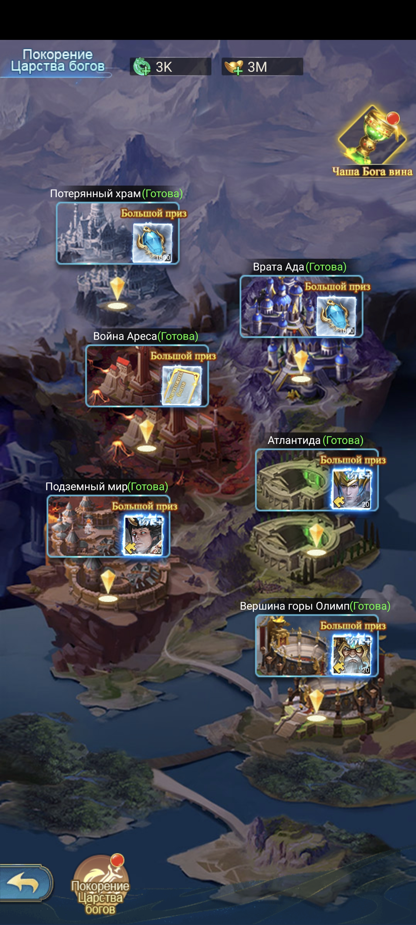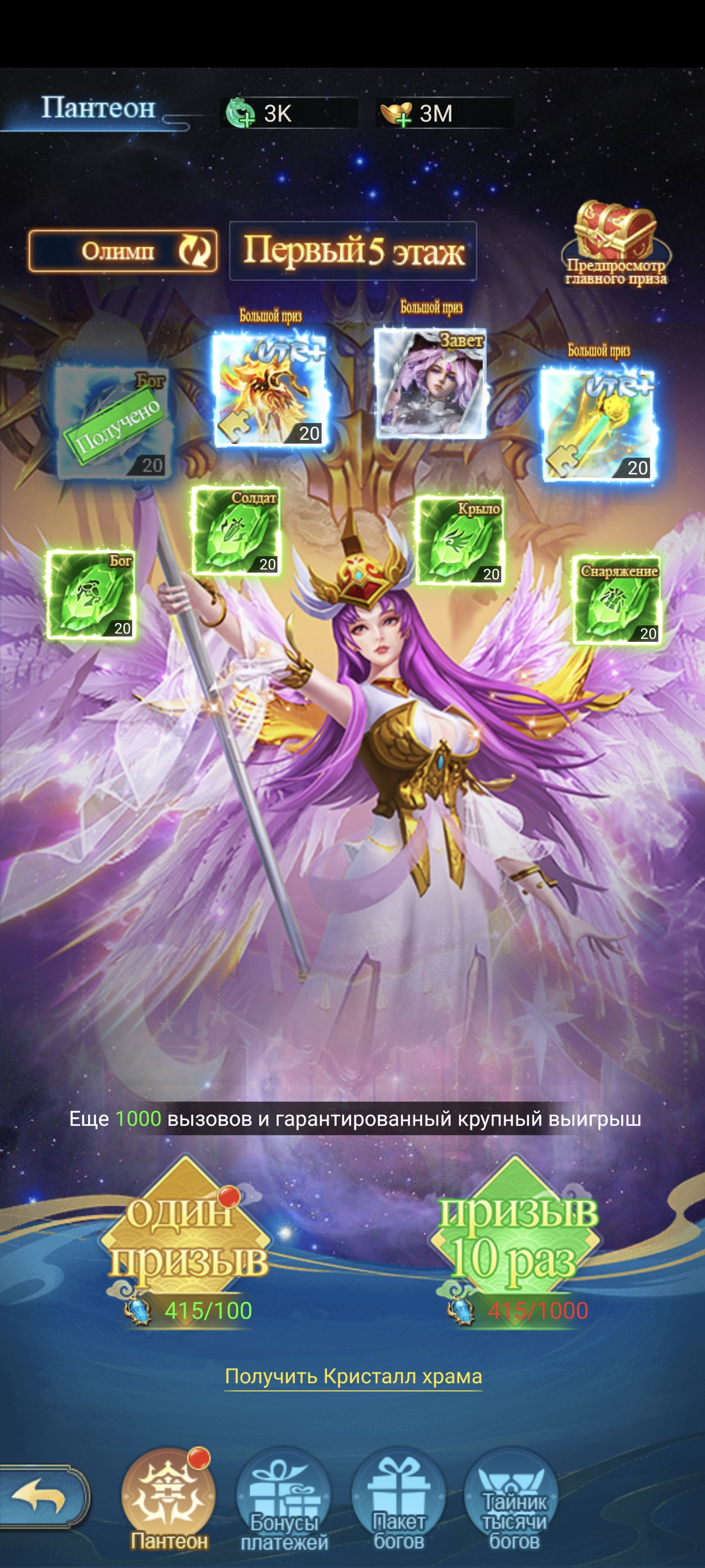 Тут мы получаем божество UTR+ Кратоса. Основное требование в его получении это 600к сверхсилы набрать и 18B бм иметь на закрытии всей лестницы.