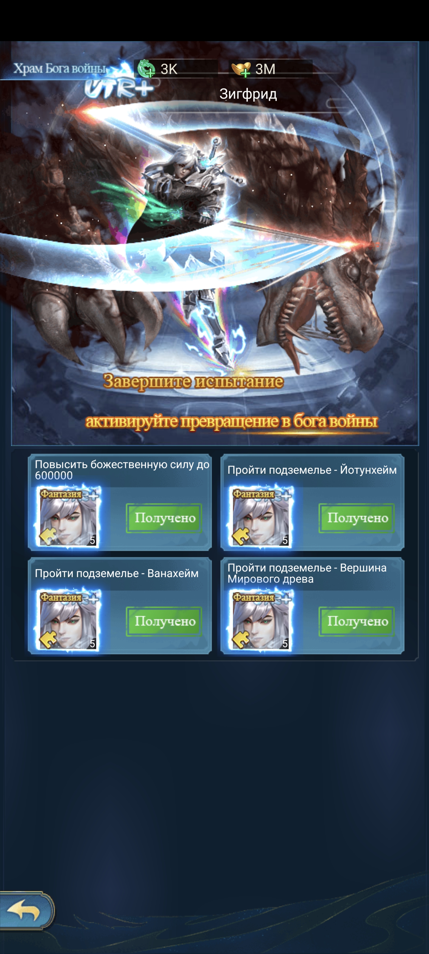 Божество Зигфирд получаем на 600к сверхсилы и лестница выйдет на 23B бм.